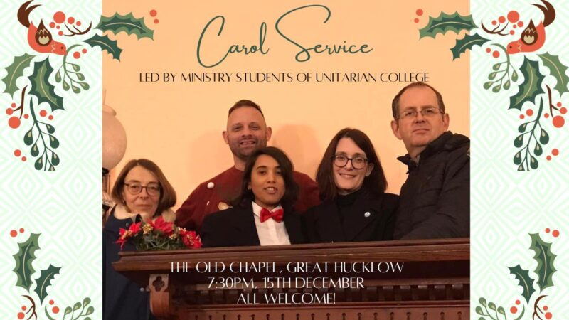 This Christmas, our Unitarian ministry students will again be leading a Carol Service at the Old Chapel at Great Hucklow in the Peak District. The village of Great Hucklow has amazing Christmas lights – and this service is sure to get you in the mood for the festive season!